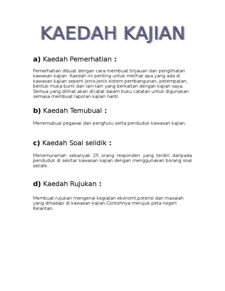 Contoh kaedah kajian kerja lapangan tugasan geografi tingkatan 3 .